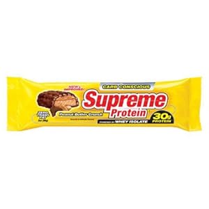 Vendor: "SUPREME PROTEIN" PROTEIN BAR 3 oz. Peanut butter crunch. Carb conscious protein bar. Gourmet candy taste.