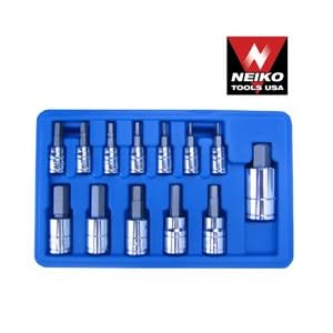 Product Description : From the ManufacturerQuality hex bit sets, made with Cr-V alloy steel, mirror polished and chrome plated, drop forged and steel heat treated. Product Description : Neiko Tools U.S.A. 13 piece Hex Bit Socket Set, SAE, 1/4"-Drive: 5/64, 2/32, 1/8, 5/32, 3/16, 7/32, 1/4" x 37mm Long, 3/8"-Drive: 9/32, 5/16, 3/8, 7/16, 1/2 x 48mm Long, 1/2"-Drive: 9/16" x 55mm Long, Chrome Vanadium Mirror Polished Socket and S2 Bit
