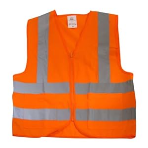 Product Description : Size Large - comfortable safety vest made with breathable wrap knitted fabric. Premium quality vests meets ANSI/ISEA 107-2004 Class 2 standard. Zipper front, high visibility orange fluorescent color. ANSI compliant 2-inch reflective band in front and back, with two pockets on the side. Perfect for jobsite construction workers, truck drivers, bikers, or other uses.