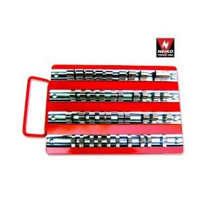 Product Description : Neiko Tools U.S.A. 40 piece Sockets Tray Rack, 1/4", 3/8" and 1/2" Rails Attached to Tray, Sturdy steel construction with convenient carrying handle, Size: 6" x 8-1/2"