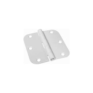 Product Description : 3-1/2-Inch x 3-1/2", White, 5/8-Inch Round Corner, Residential Door Hinge, For Use On Lightweight Residential Doors In Low Frequency Applications, Non-Rising Removable Flush Pin, Five Knuckle, Full-Mortise Design, Screws Included, Carded.